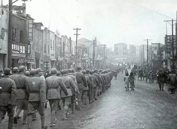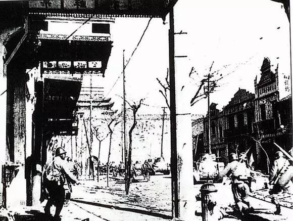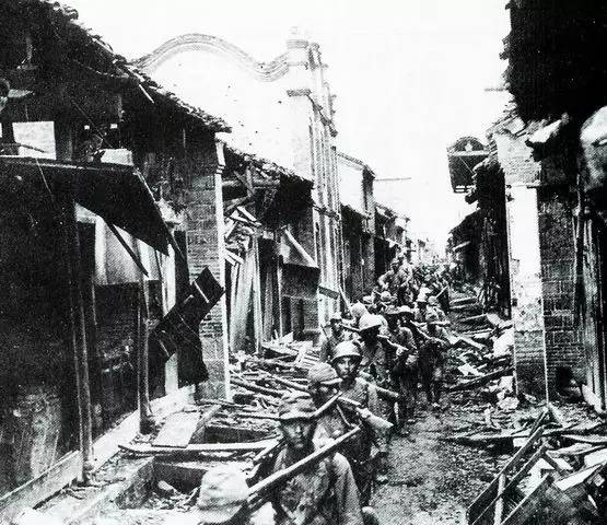 豫南会战中日军进入已经化为废墟的信阳市内