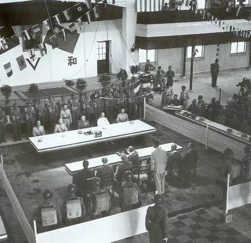 1945年9月9日,民国政府在南京中央陆军军官学校大礼堂接受在华二百万日军正式投降
