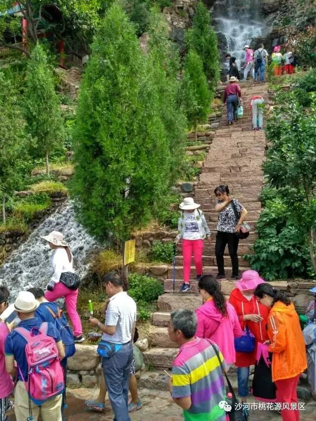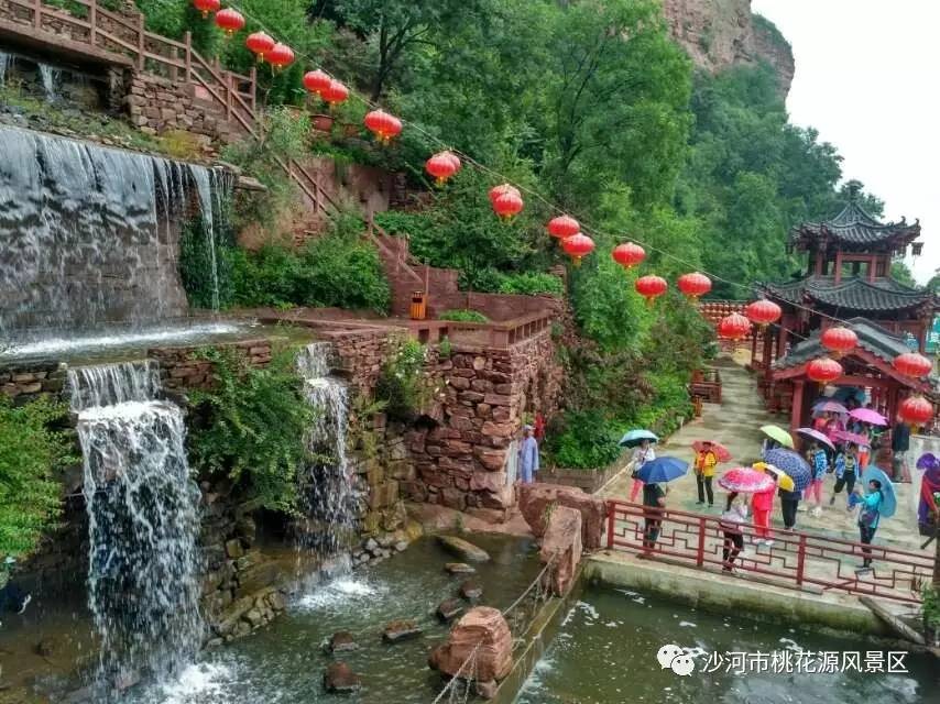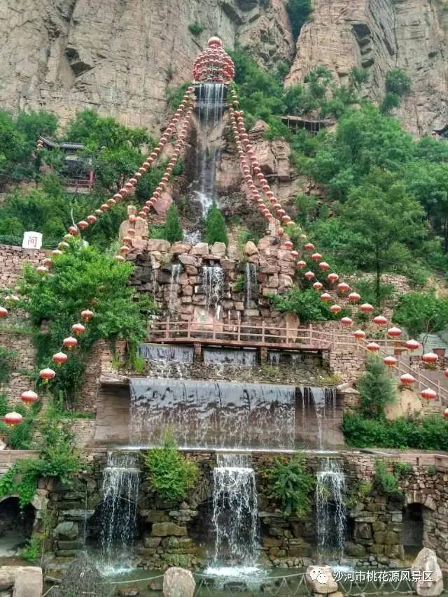 山泉飞瀑是夏日游赏桃花源的好景观。桃花源景区内共有桃花源大瀑布、大列峡大瀑布、爬山廊山泉小瀑、荷花湖金殿飞瀑、悬空玻璃九叠瀑布、金蟾吐瑞瀑布等6条瀑布,加上随处可见的小溪湖池,以及近日建成的水上静憩园,使桃花源无愧于一个响亮的名称——北方水世界。
