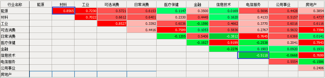 构建投资组合,也不是简单的在不同板块挑几个股票就行了,因为不同行业之间的相关性也不同。