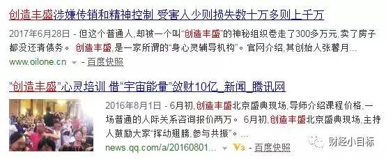 创造丰盛心灵培训骗局,敛财10亿;“成功大师”XXX;邪教“传福音”等。
