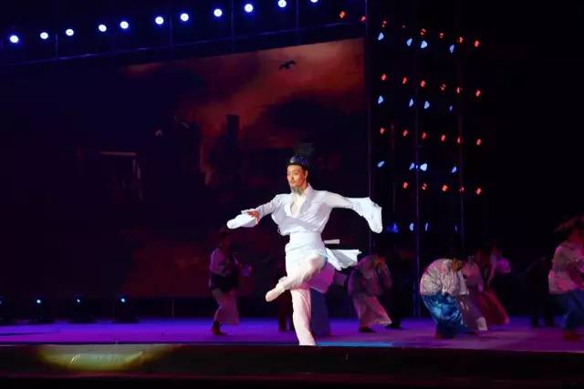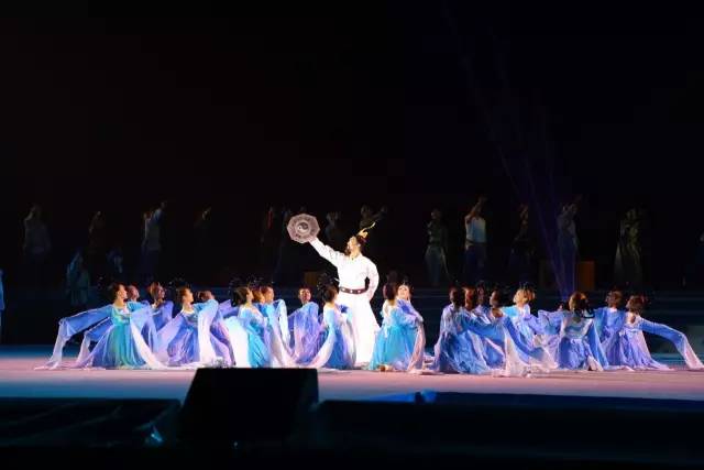 第二章《风起邢台》中,牛郎织女款款而舞。“牛郎”轻轻一拖,“织女”便踩上其肩头。两人随着音乐旋转,“织女”一身粉色长裙随风飘动,曼妙难以言说。
