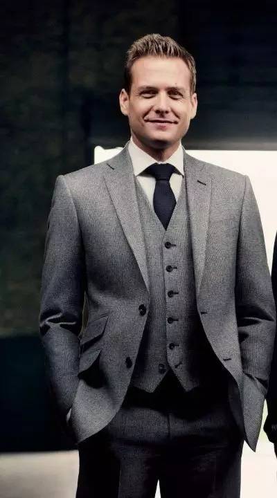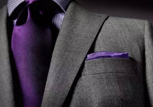 灰西装,可配紫色、灰、绿、黄和砖色领带,穿白色为主的浅色衬衫