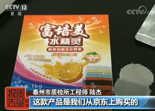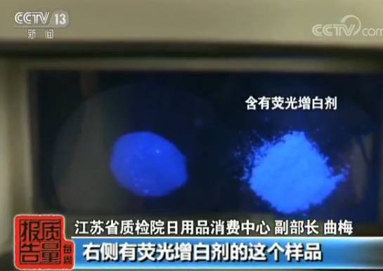 江苏省质检院日用品消费中心副部长曲梅:“这次共抽检了68个洗衣粉样品,其中有62个样品检出来含有荧光增白剂。”