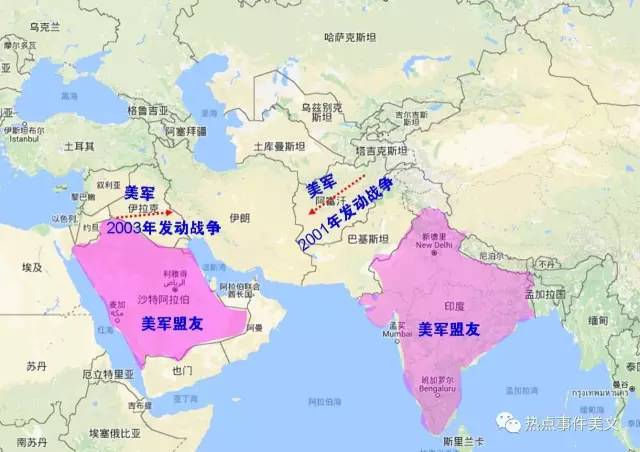 2001年美国导演了9.11事件,军事介入阿富汗;2003年,美国导演了伊拉克大规模杀伤性武器事件,军事介入伊拉克。