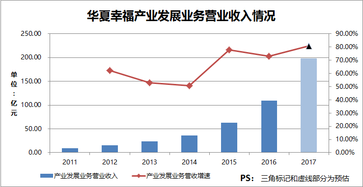 自上市以来,华夏幸福就定位自己是产业新城运营商,提供产业发展服务,其它业务如园区住宅配套、土地整理和物业管理服务等业务,都是以产业发展服务业务为核心。