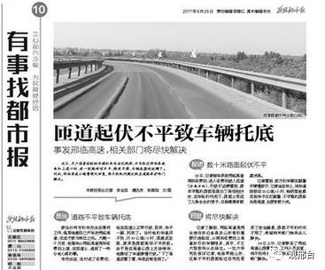 近日,不少读者纷纷给本报打来电话反映称,开车经过邢临高速南和上道口时,有一段路崎岖不平,稍有不慎,车辆底盘就被蹭了。对此,邢临高速公路管理处回复,将尽快把问题反映至道路养护部门解决。