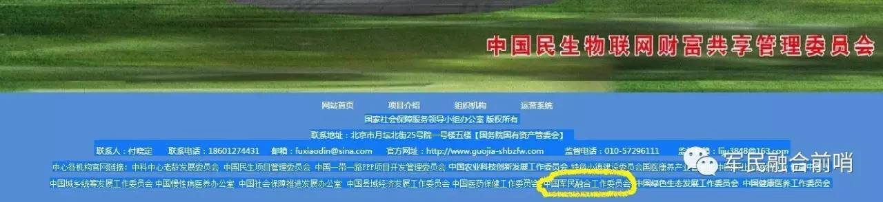 看到黄颜色圈点没有?所谓“军民融合工作委员会”赫然在列!如果真与那个所谓“中心”没关系,“中国民生物联网财富共享管理委员会”既然是“中心”下设机构,难道会不知道?骗傻子啊?