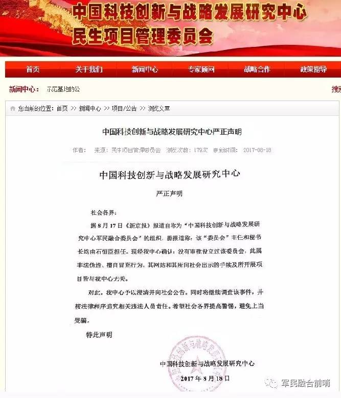 8月18日,一份奇怪的声明坚定前哨公此前的判断。声明者:中国科技创新与战略发展研究中心。各位不妨一看。