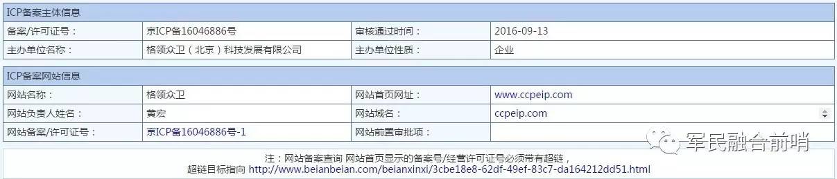 备案企业:格领众卫(北京)科技发展有限公司(被列入“经营异常”名录)