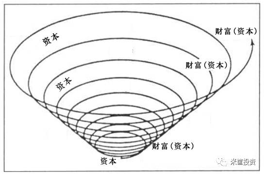 ▲向上的财富螺旋:资本跟财富相互转化,由此形成正反馈循环,财富越来越多
