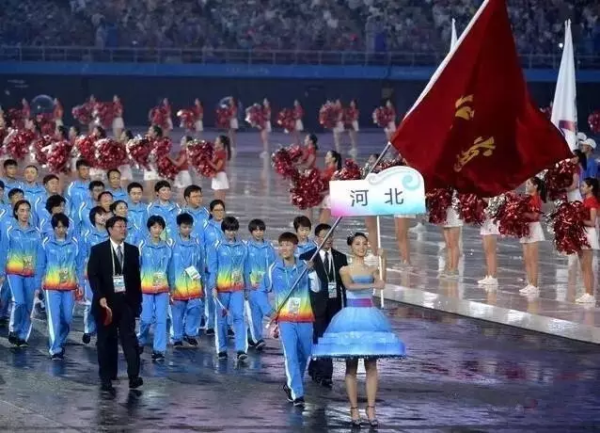 河北代表团派出一个40人的队伍参加各代表团入场仪式,旗手由连续两届全运会拳击冠军的邢台籍选手尹军花担任。
