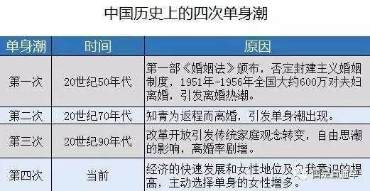历史上, 我国曾出现过几次单身潮。如今,随着经济的快速发展和女性地位及自主意识的提高,主动选择单身的人逐渐增多,第四次单身潮来临。