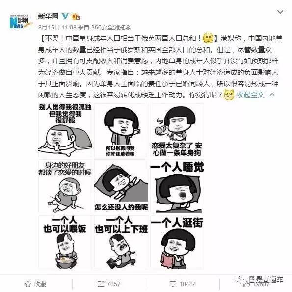 原以为单身的苦可以自己默默咽下,没想到这件事已经上升到国家层面了。网友更是调侃道:“没能为国家经济做贡献,我是单身我有罪。”