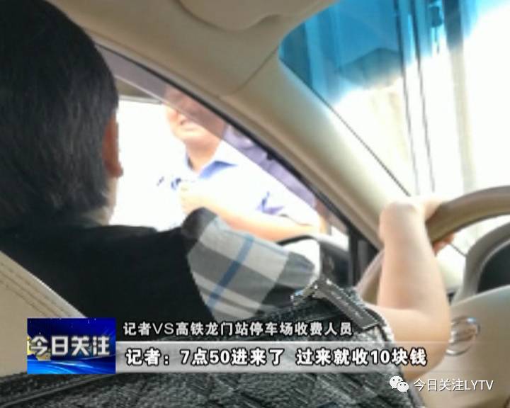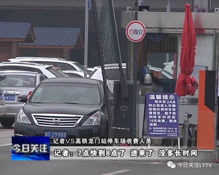 高铁龙门站夜间收费一直是观众投诉的热点,上午八点三十分,我们把暗访的第一站就放在了这里。进入停车场,一块大型收费公示牌映入眼帘,“洛阳龙门高铁站停车场收费标准一览表”标明“23点至8点每次收费10元”,而在公示牌最底端则有“早8点前进入的车辆,按夜间车辆收费”的字样,这一行字明显有贴补上去的痕迹。十分钟后记者驾车驶向停车场出口。