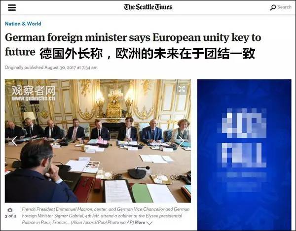 当地时间30日,德国外交部长加布里尔访问法国时呼吁欧盟保持团结,但是突然话锋一转,要求中国坚持一个欧盟的原则,不要分裂欧洲。