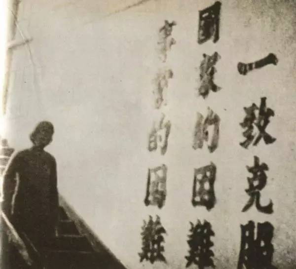 民生公司内走道上的标语“一致克服国家的困难,事业的困难”