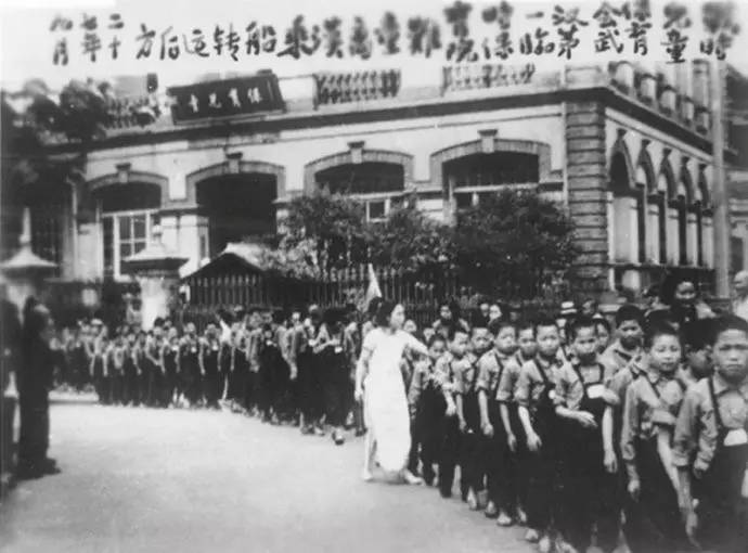 10 月 24 日早上,第一艘满载着物资和人员的轮船开出宜昌港,最先获得撤离机会的,是几百名保育院的战争孤儿和难童。孩子们眼眶里满含泪水,扒在栏杆上挥着小手向岸上的人群告别,齐声唱起了《战时儿童保育院院歌》: