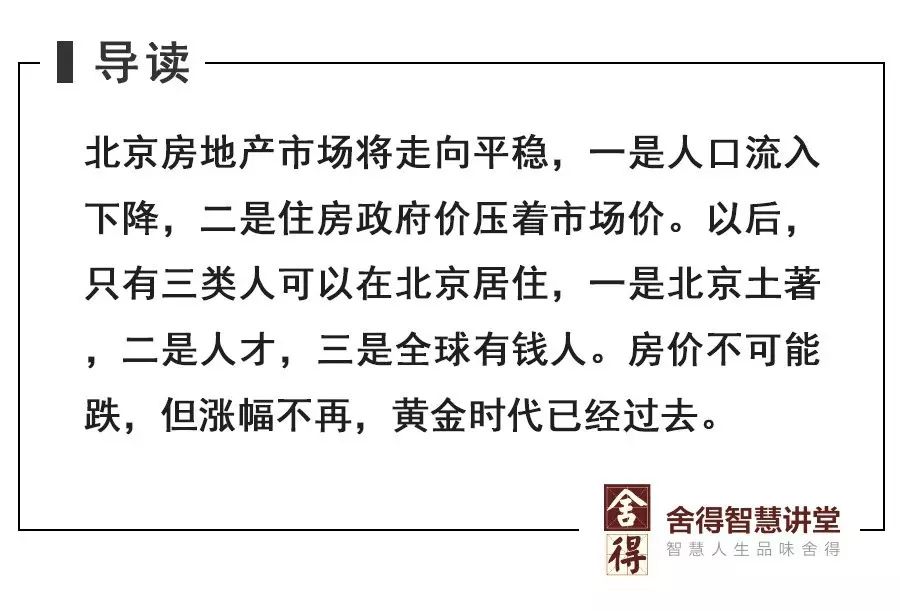 北京房地产市场将走向平稳,一是人口流入下降,二是住房政府价压着市场价。