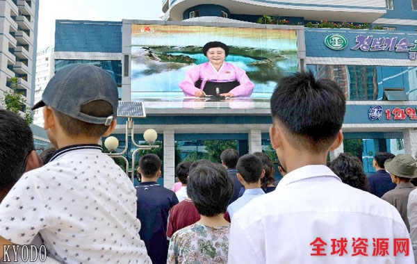 9月3日,朝鲜平壤市内的大屏幕上正在播放氢弹试验的重大报道。来源:共同通信社