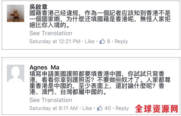 因为该香港记者竟在填写表格时,将国籍直接写成香港,而非中国。