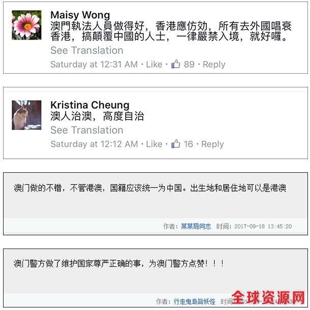 对此事件,无论是脸书上的港澳还是内地,大部分网友都表达了对澳门当局维护国家尊严做法的肯定,纷纷对澳门警方点赞。