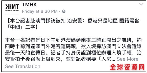 据报道,15日下午,该记者来到港澳码头搭乘三点的客轮,欲入境采访澳门立法会选举最后一天的宣传日。