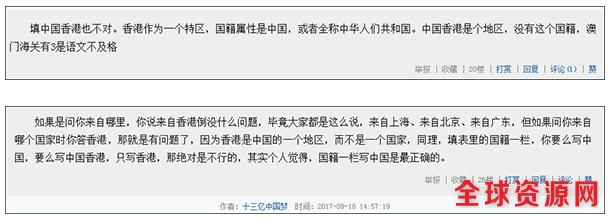 但也有网友表示,填“中国香港”似乎也不太对,国籍属性只能是中国。
