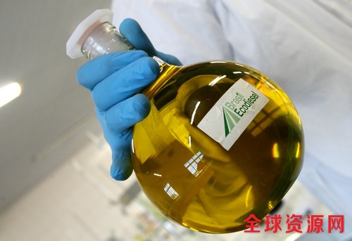 资料图片:这是2008年3月31日,在位于巴西东北部城市伊拉瓜拉的巴西生态柴油公司,一名技术人员展示生物柴油样品。新华社记者 张传奇摄
