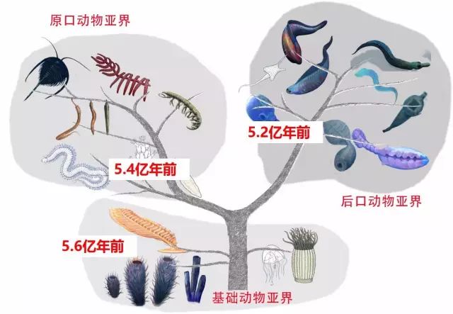5.4亿年到5.2亿年之间有个小壳动物大爆发,仔细一看都是原口动物,大部分门类在这儿都出现了。