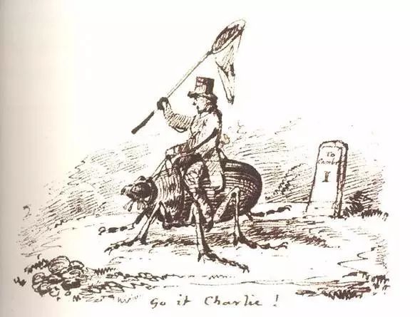我个人觉得有两条。第一条就是他的秉性,他太爱自然了。他的同学给他画了一个漫画,拿甲虫当马骑。这是有故事的。