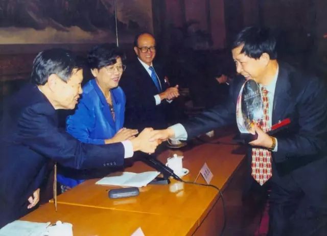 所以再隔了一两个月舒德干得了一个奖。这几个人认得吧。因为这个奖金是李嘉诚先生给的,李嘉诚先生在后边,这个是杨振宁。