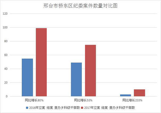 在邢台市桥东区,一个月内就发现各类有价值的问题线索313件,涉及294人。通过与桥西区、内丘县、任县开展统筹巡察,该区纪委案件数量大幅增长,截至目前,立案92件,同比增长91%,结案75件,同比增长53%,给予党政纪处分71人,同比增长65%。