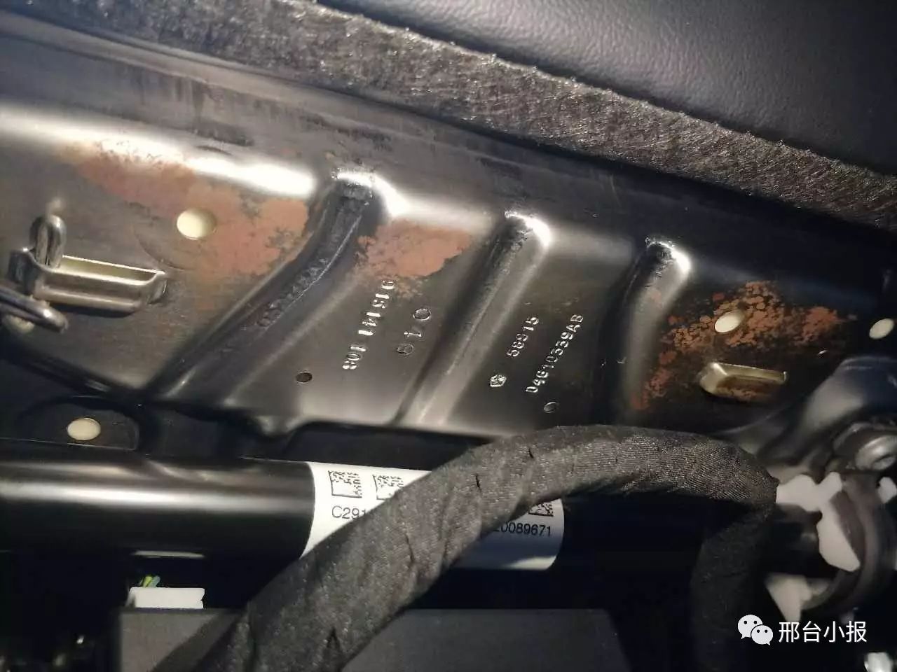 最让我接受不了的是座椅内部所有的部件居然也生锈了!如果真的是一辆完全的新车,座椅怎么会生锈,座椅怎么可能会生锈,这让我开始疑问:这辆车到底经历了什么?就算车辆内被水泡过,也不至于全部生锈吧,其实,这也有可能,因为我买的这辆广汽菲克的大切诺基就有严重的质量问题,谁知道是不是粗制滥造的啊!