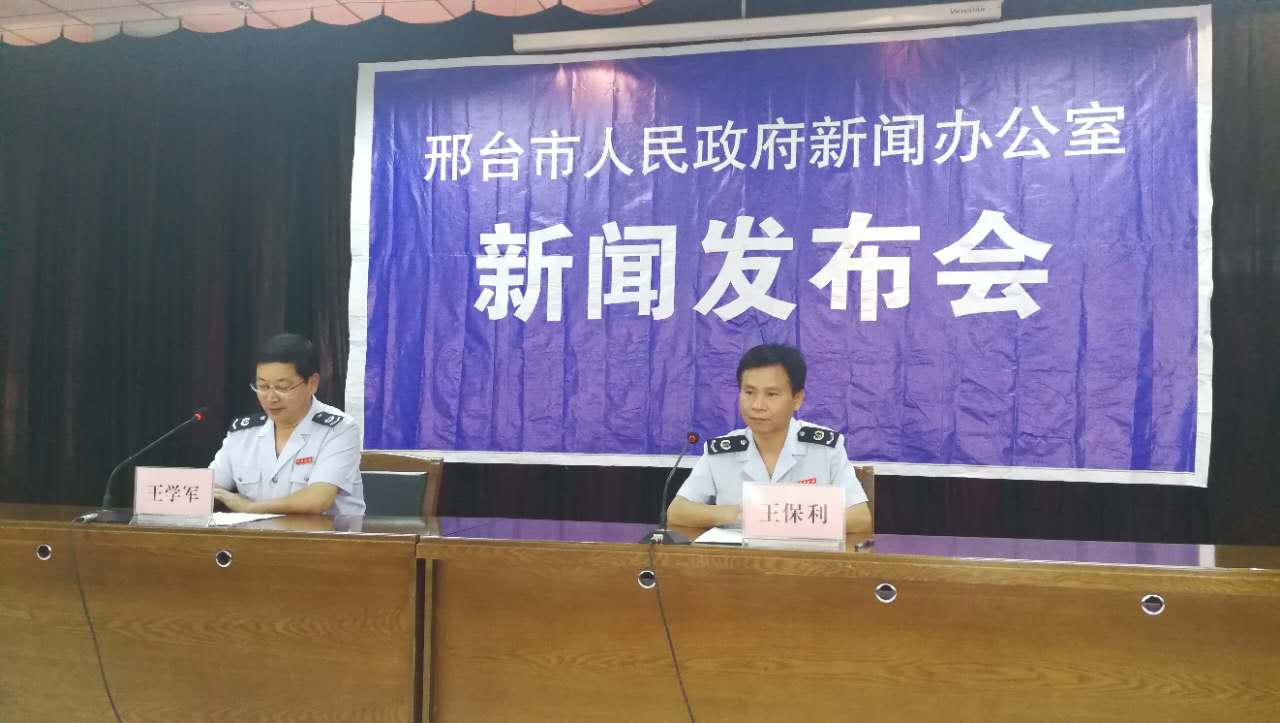 邢台市国税局副局长王学军、纳税服务科科长王保利出席发布会