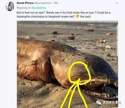 “它可能是某种深海生物,死了以后被冲上了岸,可能已经承受了气压变化。深海中有许多尚未发现的生物,这可能是其中之一。”