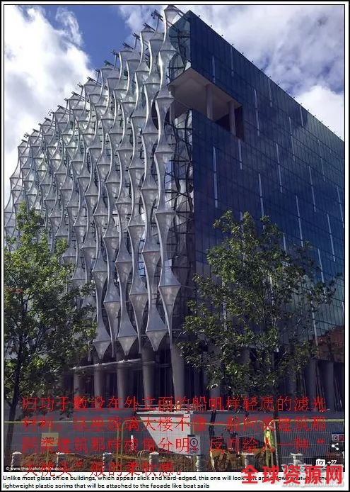 除了安全性,新馆也突出了低碳环保的理念,几乎可以实现能源的自给自足,甚至在断电的情况下也能“长期”运转。在能效设计方面,建筑是一个覆盖着薄膜太阳能电池的高耸玻璃立方体。归功于敷设在外立面的船帆样轻质滤光材料,这座玻璃大楼不像一般同类建筑那样棱角分明,反而给人一种“大枕头”般的柔软感。就像遮光剂一样,透过这种材料,阳光射入大楼,但是里面强化过的深色玻璃会把热量隔绝在室外,保证大楼内部既明亮又凉爽。(小编想,这不就是给大楼带了个墨镜嘛,光进来,热挡住!)