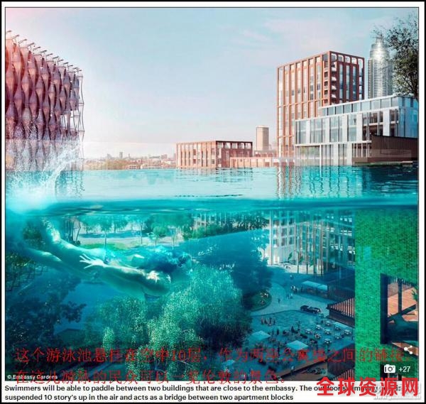 值得一提的是,除了使馆花园,室外的“天空游泳池”也同样值得关注。