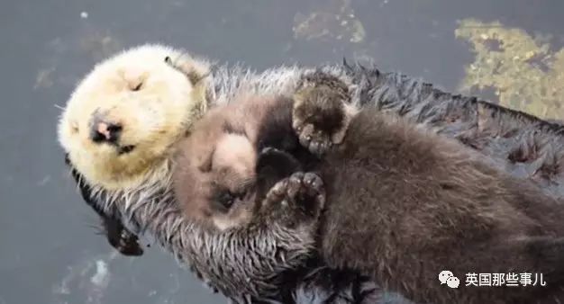 海獭妈妈会抱着宝宝在水面上睡觉~