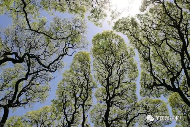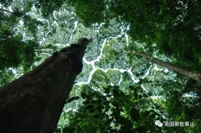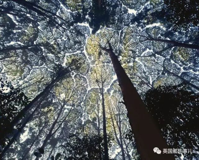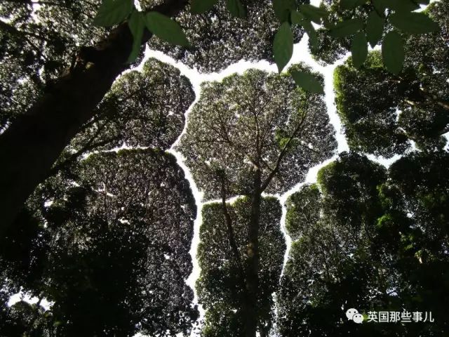 在一些树种上可以观察到一种叫“冠层羞避”的现象,它们的树冠互不遮挡,形成一个沟状的开口。