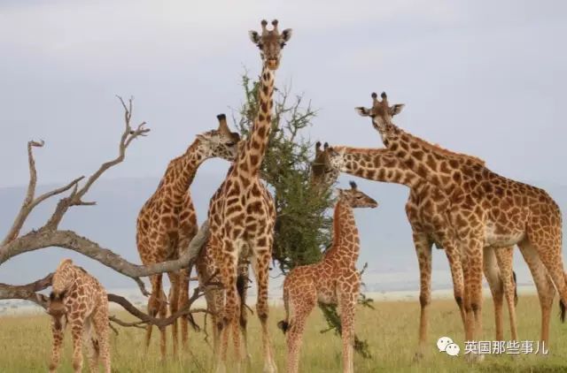 长颈鹿宝宝会上’幼儿园’,白天有个成年的雌性长颈鹿会负责照看一群小长颈鹿,它们的幼儿园一般位于一个小山丘上,这样其他长颈鹿妈妈就能看到它们的宝宝在幼儿园表现怎么样了。