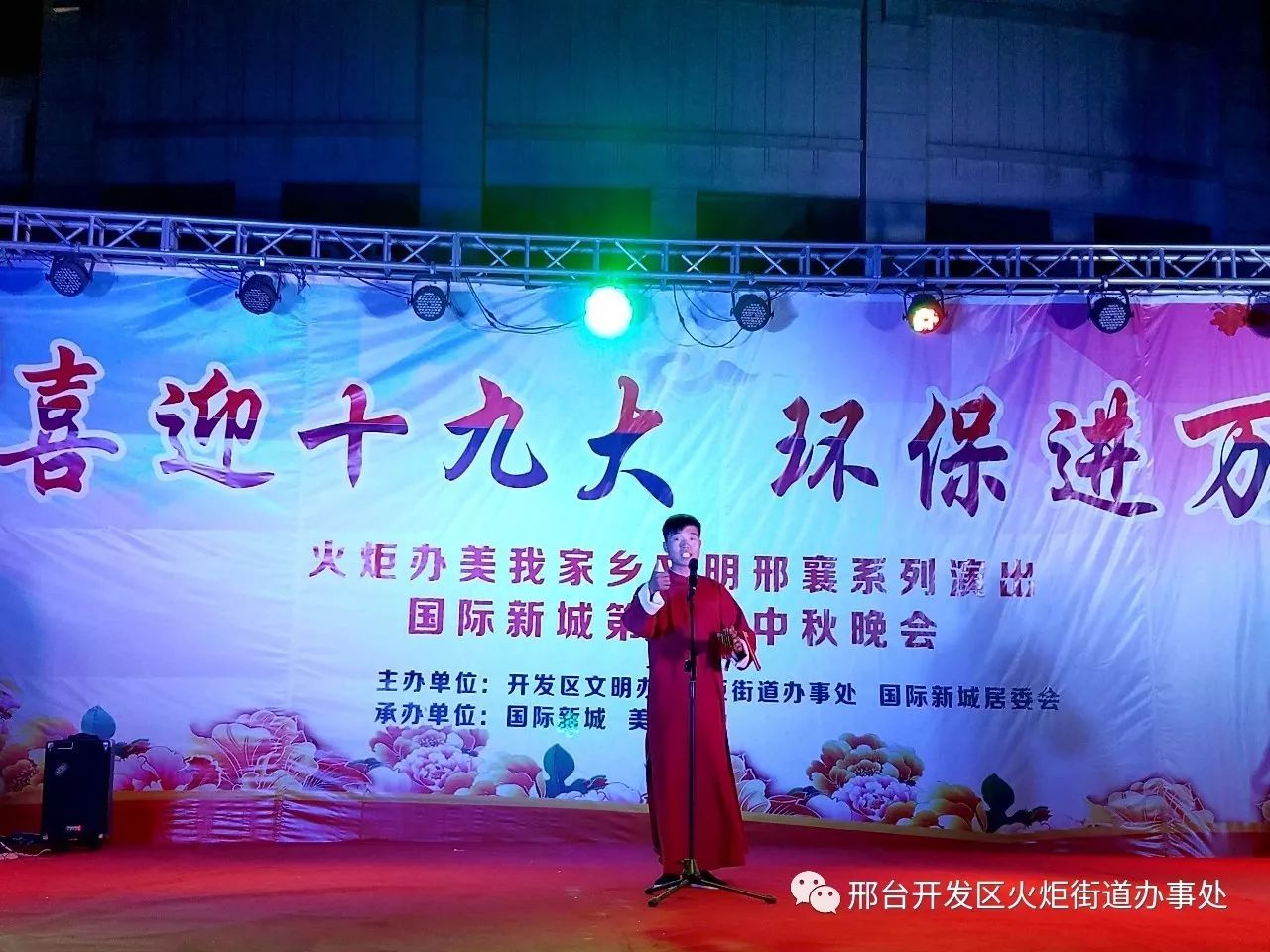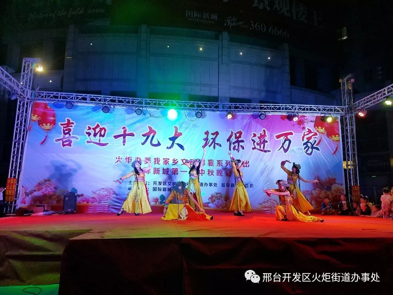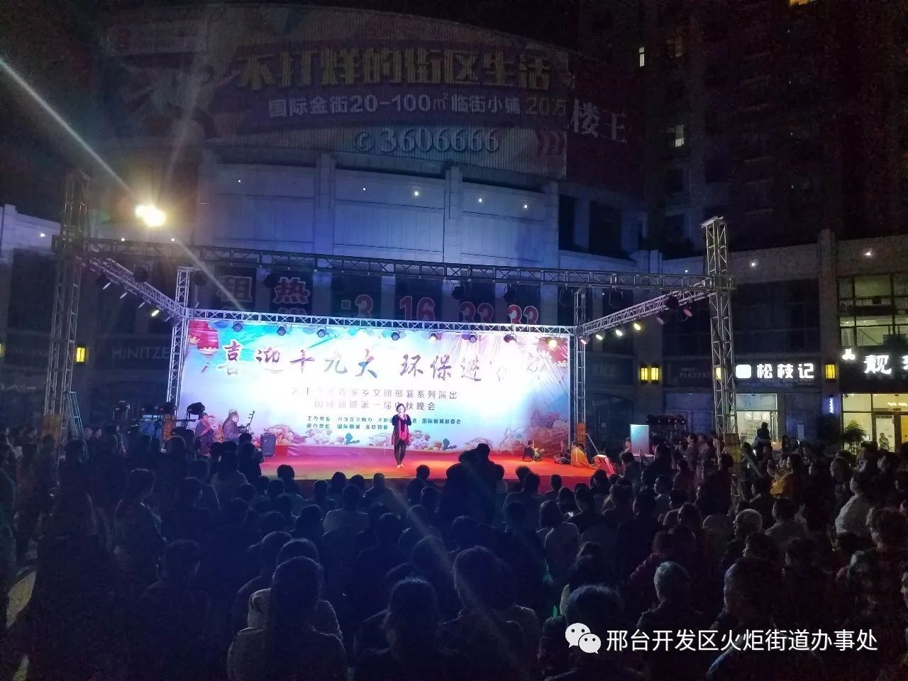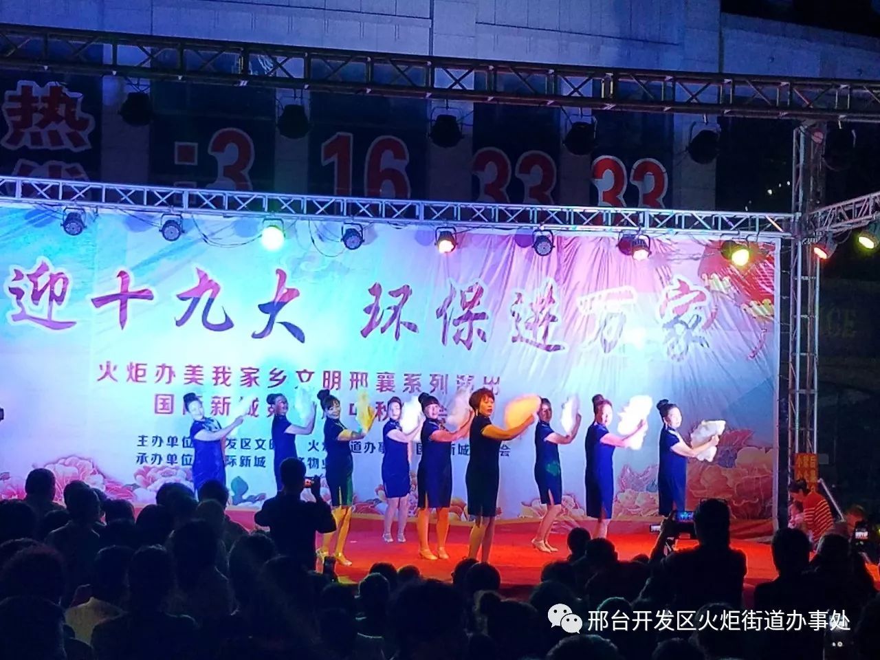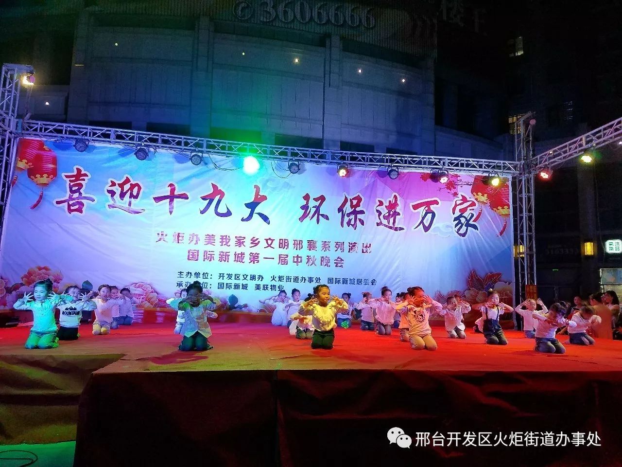 9月28日晚7点半,国际新城广场人员鼎沸,大家呼朋引伴的赶过来,只见广场上张灯结彩,霓虹灯下“喜迎十九大,环保进万家”的大幅海报格外耀眼,原来是火炬办在国庆68周年和中秋佳节即将来临之际,携手国际新城居委会在这里隆重举行文艺汇演,庆祝祖国母亲的68岁华诞。