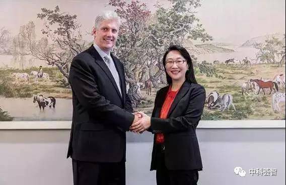 图为HTC董事长王雪红和谷歌硬件资深副总裁Rich Osterloh