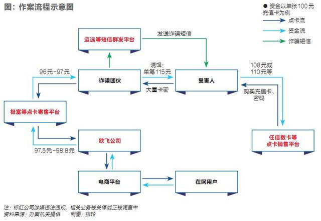 上述诈骗案中,詹建清等人先通过诈骗,引诱受害者在任信数卡商城高价购买电话充值卡,获取充值卡信息后迅速在网络中低价转卖给“寄售”网站极富公司,极富公司再批量转售给欧飞公司,欧飞公司将这些充值卡通过支付宝、微信等平台卖给用户充值,完成流转消耗。这条产业链已相当成熟,合计千余元的充值卡被转售充值,仅需几分钟,而受害者手中的充值卡信息也迅速“作废”。