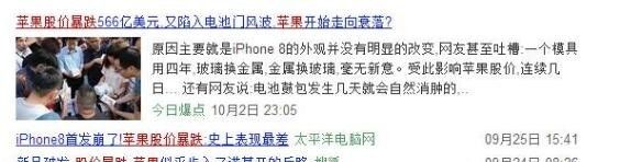 苹果不仅股价大跌,又暴出iPhone8手机因电池问题爆炸事件。有些人说苹果会衰落,步上诺基亚的后路,是有一定道理的。