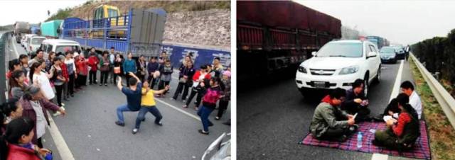 由于出门玩的人太多,所以堵车随处可见。很多网友在抱怨太堵车的同时也没闲着,纷纷停下车来拿起羽毛拍就地玩起了羽毛球。