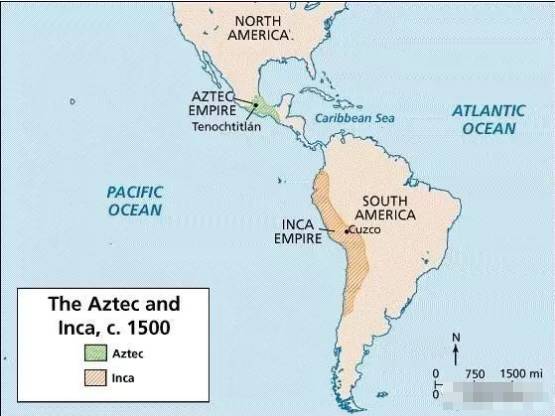 【注】:美洲三大文明中,玛雅文明与阿兹特克帝国,位于中美洲【墨西哥东南部】以南地带;印加帝国位于南美洲【秘鲁】安第斯山一带。