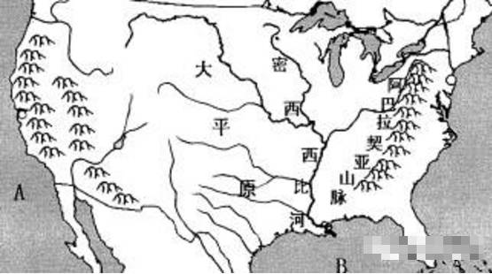美国作为一个两洋国家,西部太平洋之滨,是著名的【落基山脉】(洛矶山脉)及形成的高原;东部自北向南分布着低矮些的【阿巴拉契亚山脉】。