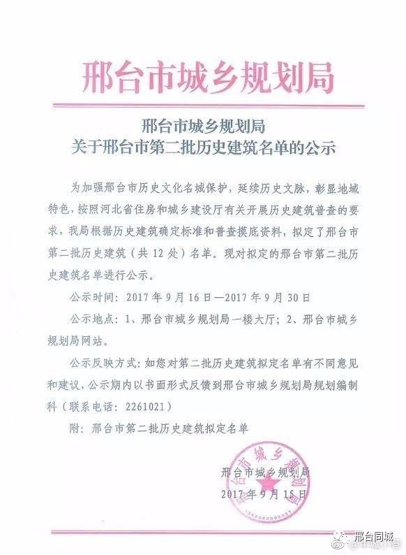 这不邢台是城乡规划局公示第二批历史建筑名单