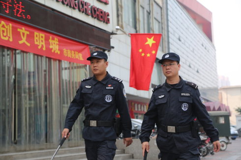 10月6日,河北省邢台市公安特警队员在节日安保岗位上执勤。国庆期间,邢台市公安特警以案件高发和治安复杂地区为重点,在车站、城区主要商业网点等人员聚集地点,加大武装巡逻密度,持续增强震慑效果,做到屯警街面、动中备勤、快速反应、高效处置,为市民欢度佳节创造良好社会治安秩序。